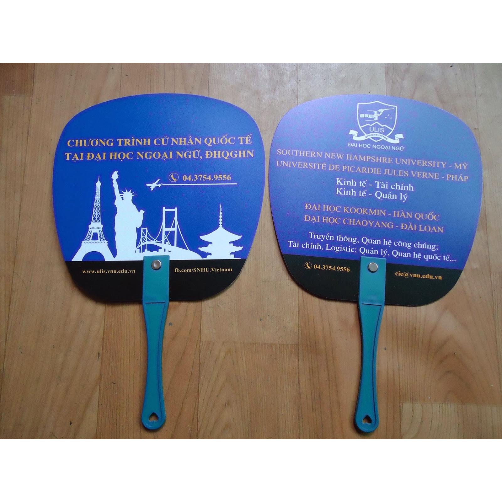 Quạt nhựa cầm tay quảng cáo có lẽ chẳng còn xa lạ gì với tất cả mọi người. Hiện nay hầu như người ta không còn sử dụng quạt giấy nữa mà thay vào đấy là dùng quạt nhựa bởi độ bền cao không bị rách lúc dùng không cẩn thận.